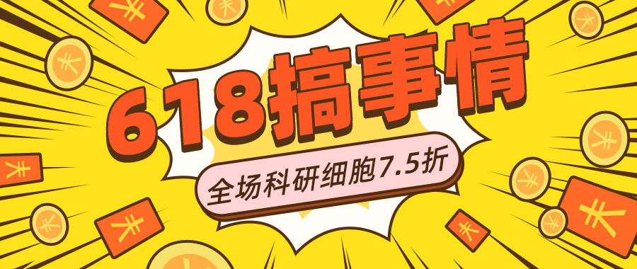 好消息,618特惠促銷活動日,公司特推出科研耗材優(yōu)惠勁爆活動,全場科研細胞7.5折銷售,活動詳情如下: