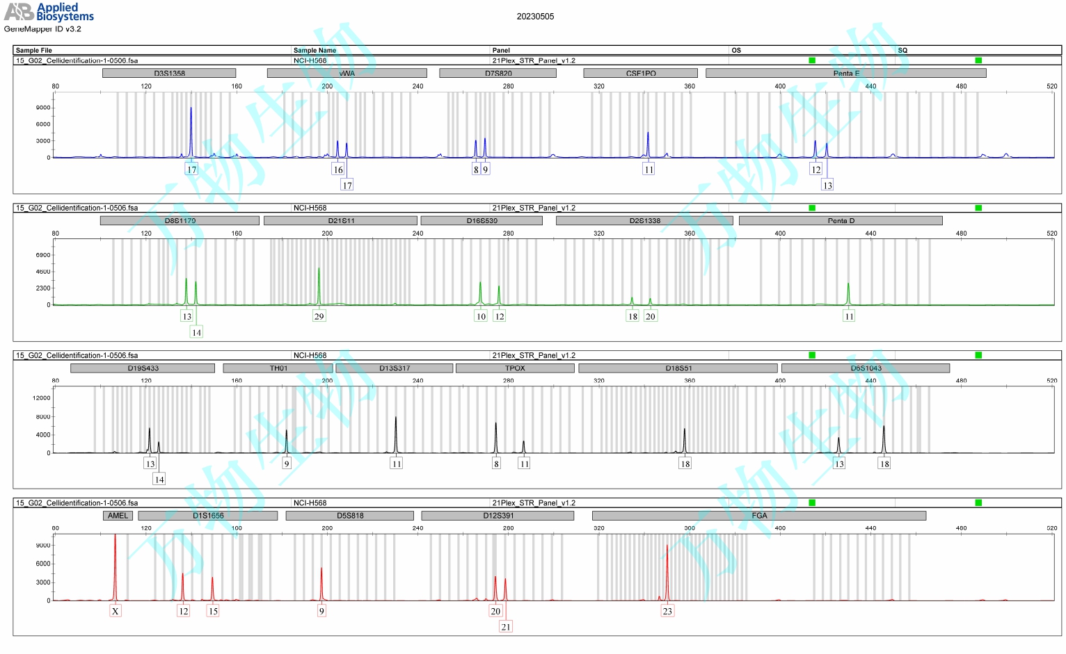 NCI-H1568細(xì)胞株源自一位48歲患有非小細(xì)胞肺癌的白人女性的淋巴結(jié)。該病人吸煙,每年60包。STR鑒定結(jié)果為:Amelogenin: X;CSF1PO: 11;D13S317: 11;D16S539: 10,12;D5S818: 9;D7S820: 8,9;TH01: 9;TPOX: 8,11;vWA: 16,17。 |