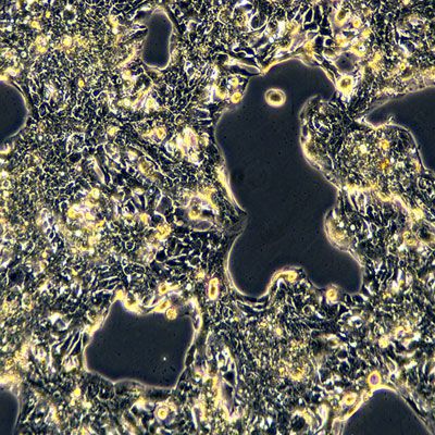 從58歲男性原發(fā)性乳頭狀甲狀腺癌中分離建系,細胞維持甲狀腺濾泡細胞分化,如合成甲狀腺球蛋白。細胞表達野生型p53腫瘤抑制基因。文獻報道K1細胞來源于甲狀腺細胞系GLAG-66。 |
