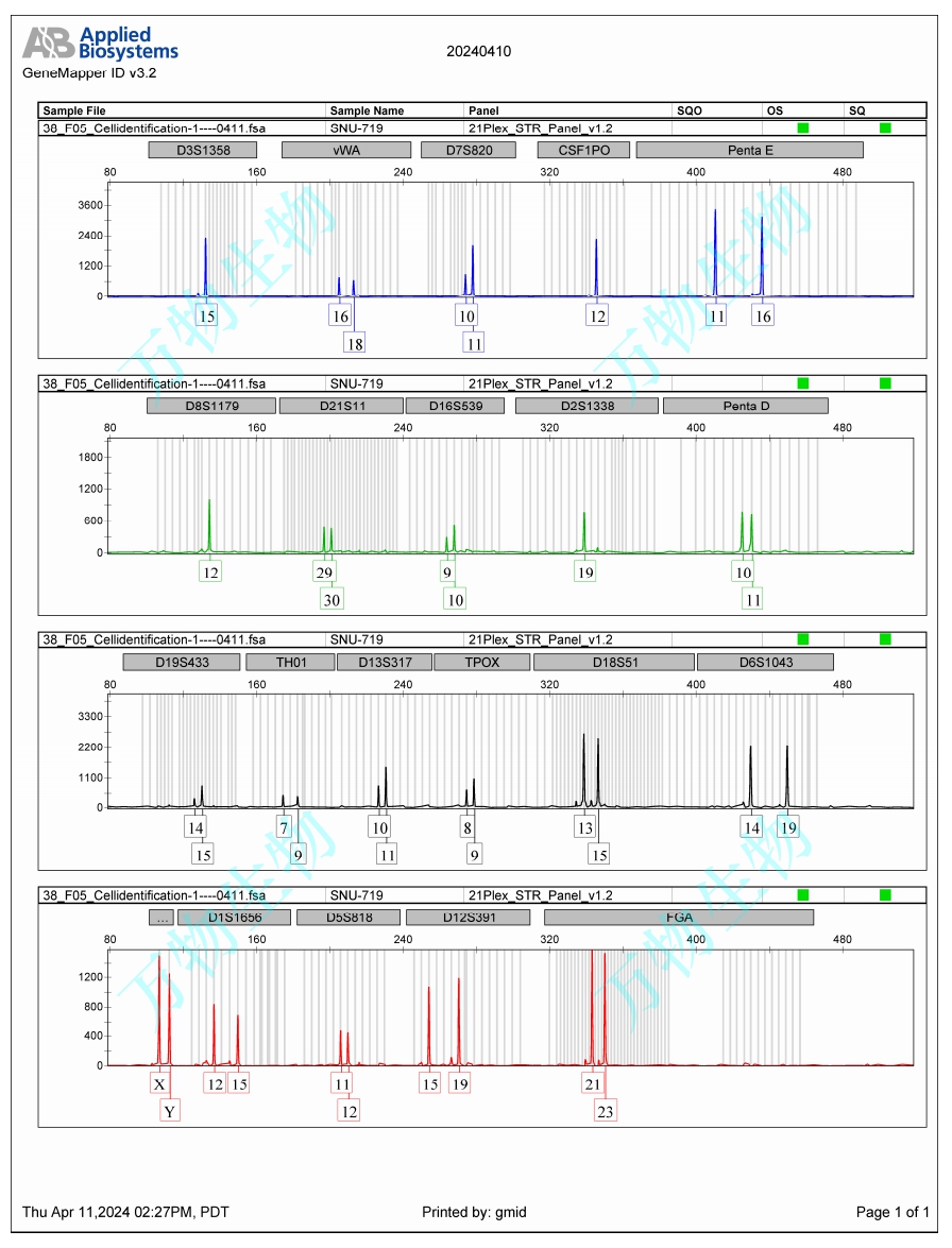 SNU-719細(xì)胞來自韓國53歲男性原發(fā)性腺癌患者的胃組織。使用光學(xué)和電子顯微鏡進(jìn)行形態(tài)學(xué)研究,通過放射免疫測定法測定上清液和細(xì)胞裂解物中的CEA,α FP和CA 19-9和TPA。篩選p53和c-Ki-ras基因突變并通過測序確認(rèn)。 |