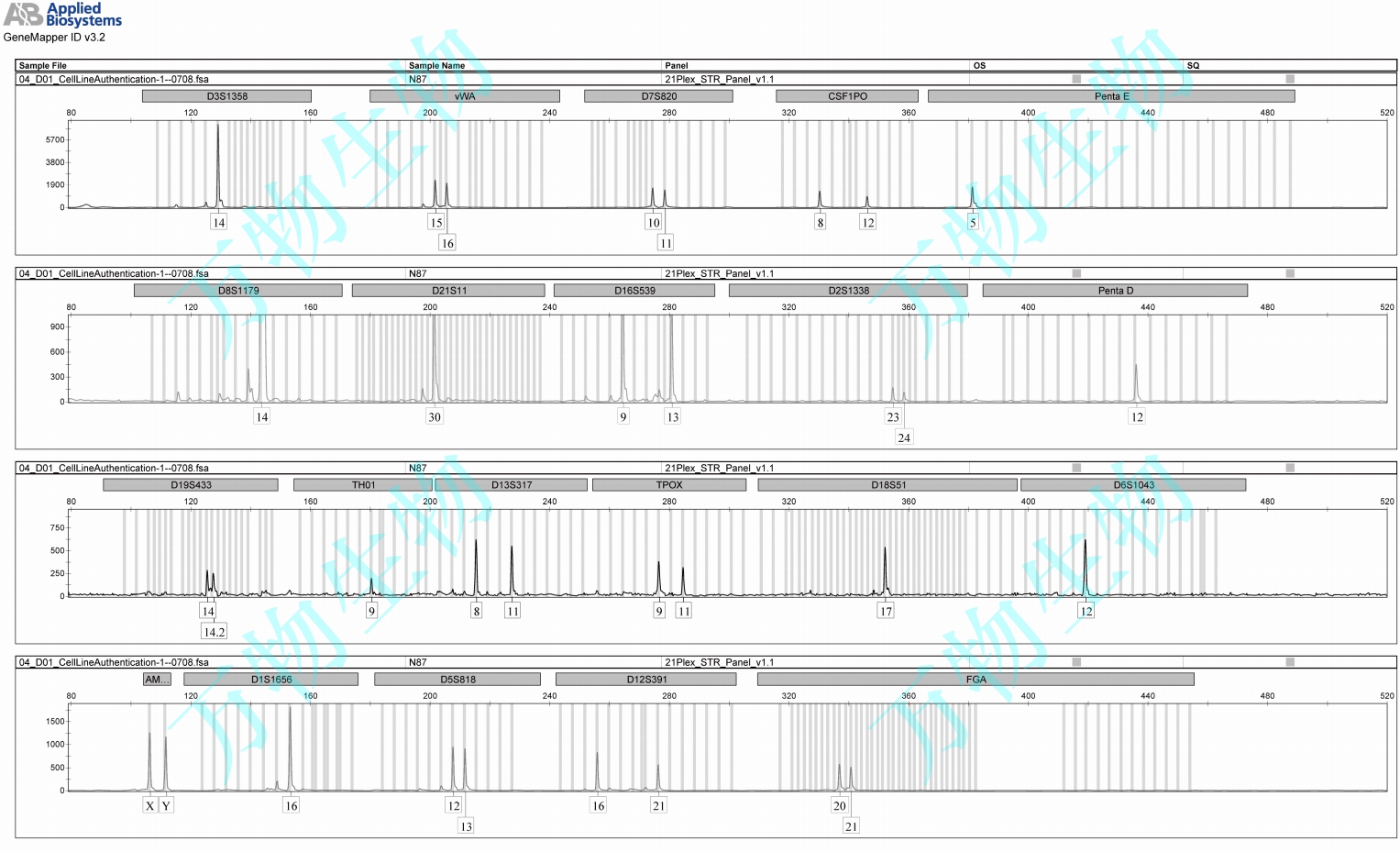 NCI-N87細(xì)胞表達(dá)表面糖蛋白癌胚抗原(CEA)和TAG 72, 并且沒(méi)有左旋多巴胺脫羧酶(DDC)活性。它們的血管活性的腸肽(VIP)受體活性極低并缺乏胃泌激素受體。它們表達(dá)蕈毒堿膽堿受體。沒(méi)有證據(jù)表明存在N-myc, L-myc, myb和EGF受體基因的重組。 這個(gè)細(xì)胞株表達(dá)的c-myc和c-erb-B 2 RNA水平與其它細(xì)胞株相當(dāng)。以下基因不表達(dá): N-myc, L-myc, c-cis, IGF-2, 或胃泌激素釋放肽。據(jù)報(bào)道NCI-N87 細(xì)胞的植板率為4.3%。 |