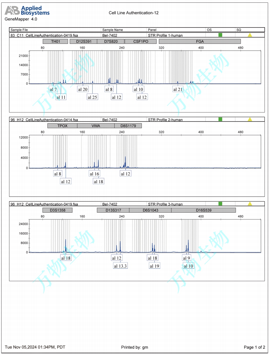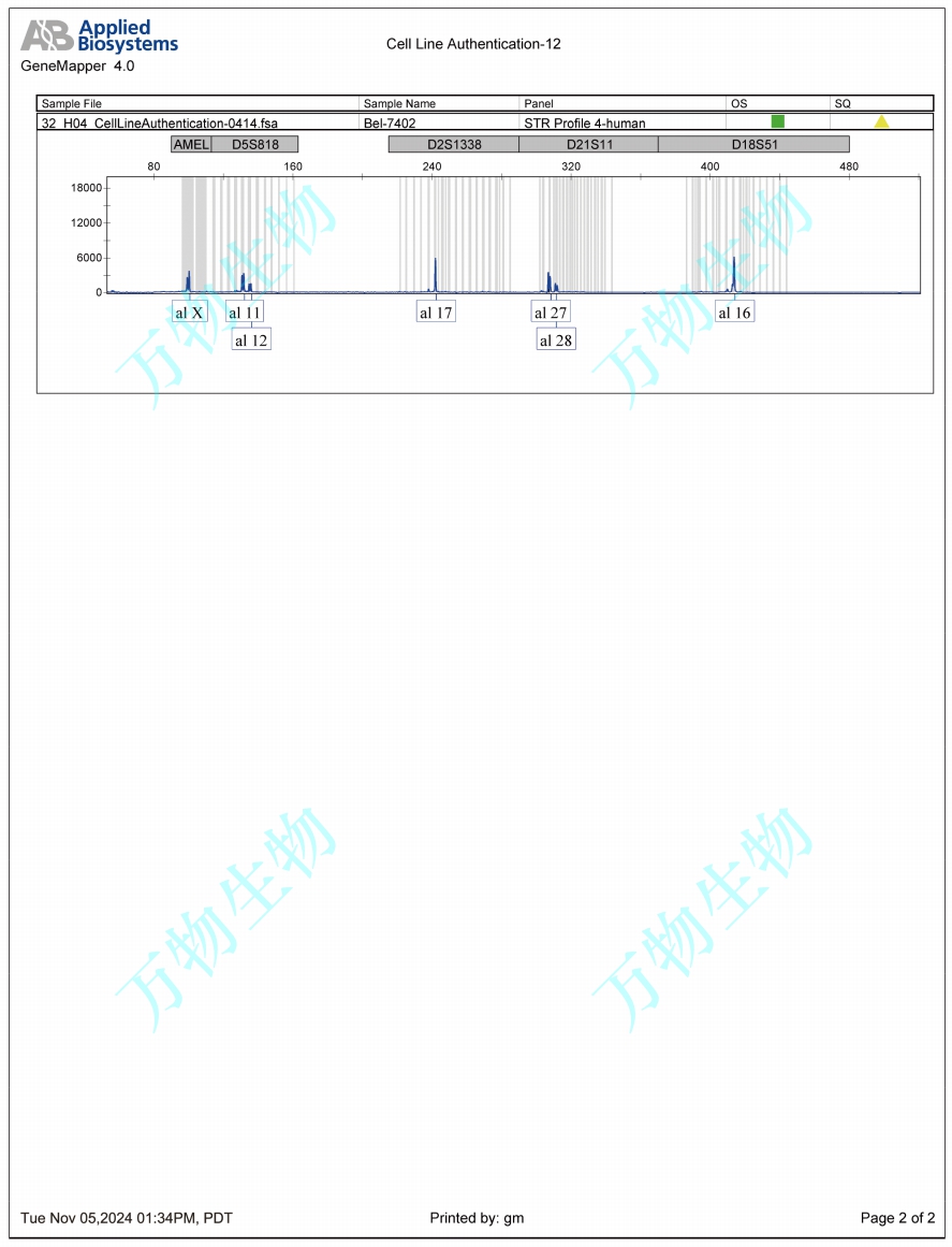 BEL-7402細(xì)胞株是1974年從臨床肝癌手術(shù)標(biāo)本中建立的。 細(xì)胞群體倍增時(shí)間為20小時(shí)。移植到處理過(guò)的wistar大鼠中的能形成腫瘤結(jié)節(jié)。細(xì)胞形態(tài)呈上皮樣細(xì)胞。在電子顯微鏡下亦顯示上皮細(xì)胞所具有的橋粒和張力原纖維,與臨床肝癌細(xì)胞相似。分瓶培養(yǎng)第四天時(shí),其有絲分裂指數(shù)約為7%。 BEL-7402細(xì)胞的染色體數(shù)為不足三倍體,有一個(gè)異常的近端著絲點(diǎn)染色體。間接免疫熒光法測(cè)BEL-7402細(xì)胞內(nèi)的AFP為陽(yáng)性反應(yīng)。LDH同工酶譜顯示與成年人肝細(xì)胞不同,而與人胚肝及臨床肝癌相近。Problematic cell line: Contaminated. Shown to be a HeLa derivative (PubMed=28807831). Originally thought to originate from a 53 year old male patient with a hepatocellular carcinoma. |