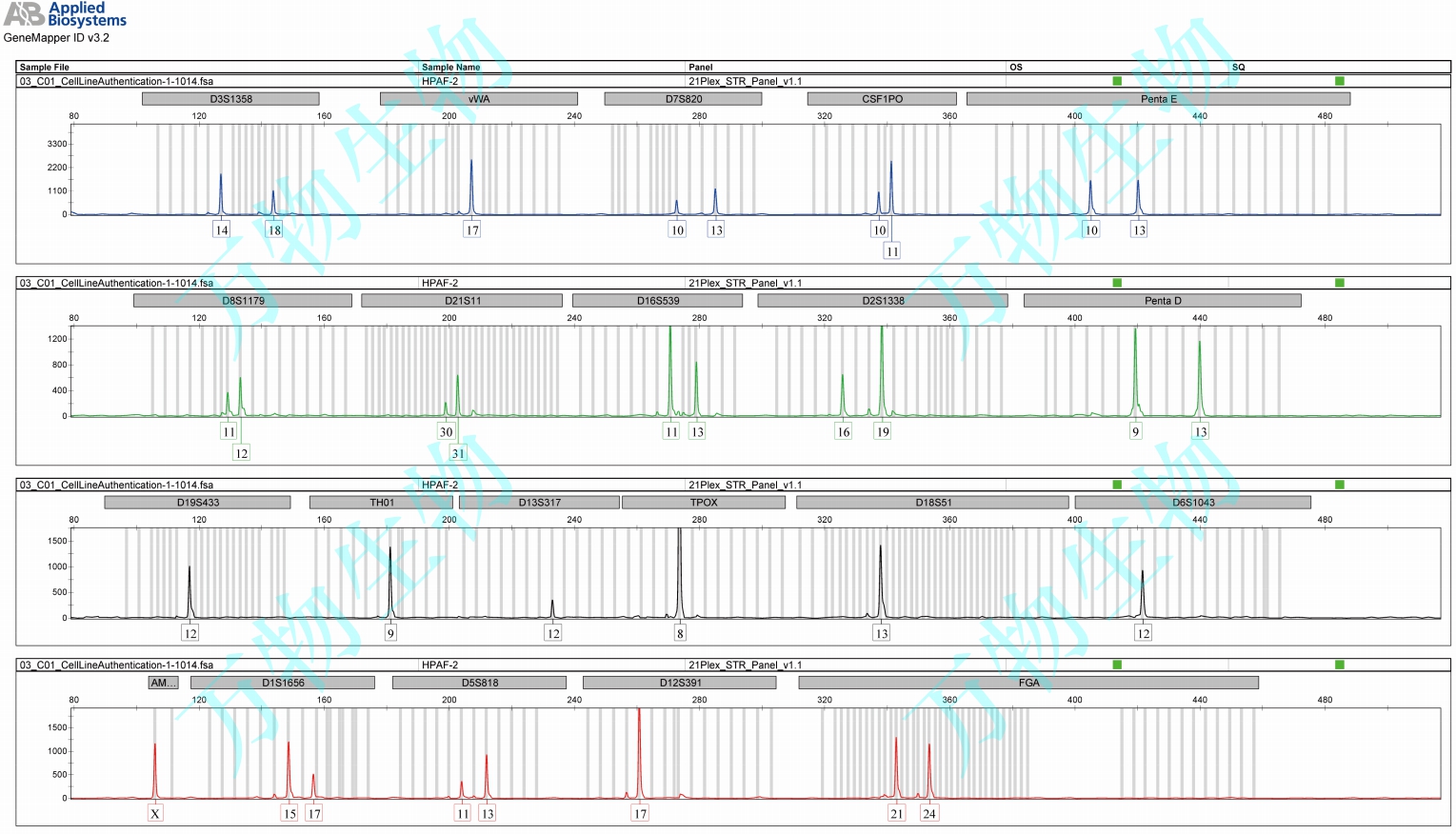 人胰腺癌細胞HPAF II是從靜置培養(yǎng)的HPAF-1細胞中增殖而來,具有無限增殖能力的自發(fā)性變體。細胞表達Muc 1和Muc 4粘蛋白基因,并高分泌Muc 1粘蛋白。它們是多形性的,在培養(yǎng)過程中可能會發(fā)生一些自發(fā)的分化。每個批次均通過本庫支原體檢測,結(jié)果為陰性。經(jīng)本庫STR檢測結(jié)果無誤。STR結(jié)果如下:D5S818: 11,13;D13S317: 12;D7S820: 10,13;D16S539: 11,13;vWA: 17;THO1: 9;Amelogenin: X;TPOX: 6,8;CSF1PO: 10,11 |