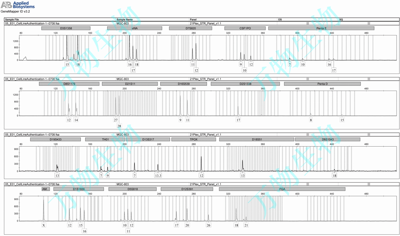 從一位53歲男性原發(fā)性胃低分化粘液樣腺癌患者建立。該株細(xì)胞DNA分型在細(xì)胞系檢索中找到完全匹配的細(xì)胞系,EXPASY數(shù)據(jù)庫(kù)顯示細(xì)胞名為MGC-803,細(xì)胞號(hào)對(duì)應(yīng)CVCL_5334。Problematic cell line: Contaminated. Shown to be a HeLa derivative (PubMed=26116706).細(xì)胞STR位點(diǎn)信息:D5S818:10,11,12;D13S317:7,13.3;D7S820:11,12;D16S539:9,11;VWA :16,17,18;TH01:7,9;AMEL:X,X; TPOX :12,12; CSF1PO :9,10,12; |