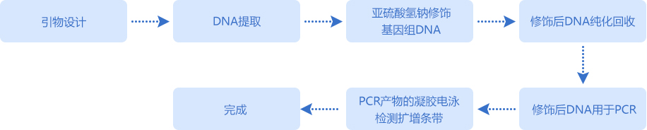 MSP法:用亞硫酸氫鹽處理基因組DNA,所有未發(fā)生甲基化的胞嘧啶被轉(zhuǎn)化為尿嘧啶,而甲基化的胞嘧啶不變;隨后設(shè)計針對甲基化和非甲基化序列的引物進(jìn)行PCR。通過電泳檢測MSP擴(kuò)增產(chǎn)物,如果用針對處理后甲基化DNA鏈的引物能得到擴(kuò)增片段,則說明該位點存在甲基化;反之,說明被檢測的位點不存在甲基化。